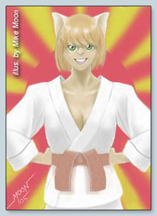 "Sensei! I broke all of the boards this time!" The gleeful catgirl grinned with pride, tail swishing happily as she collected the smashed boards that she had just chopped with her bare hand. She was a tall teenage catgirl with brown hair, green eyes, wearing her jiu-jitsu gi There was no response to her achievement, neither of approval or disapproval.