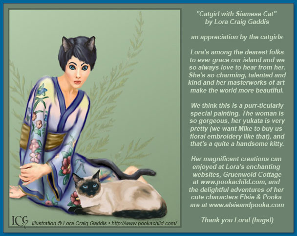 "Catgirl with Siamese Cat" by Lora Craig Gaddis